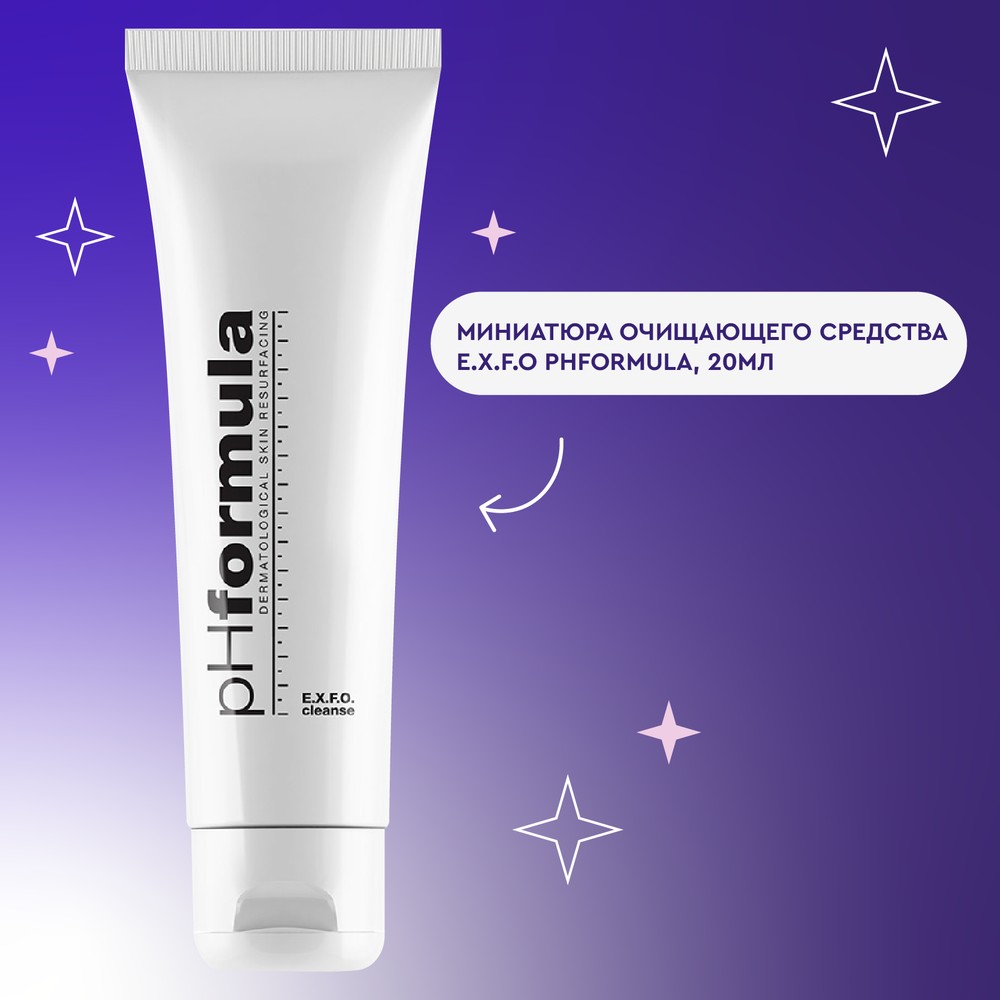 При покупке двух средств бренда pHformula в подарок миниатюра очищающего средства E.X.F.O pHformula (20 мл)