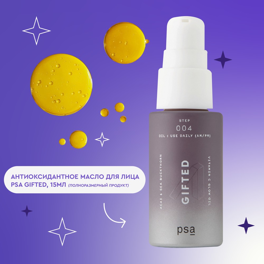 При покупке любых трёх средств от брендов Allies Of Skin \ Holifrog \ Bella Aura \ PSA в подарок антиоксидантное масло для лица PSA Gifted